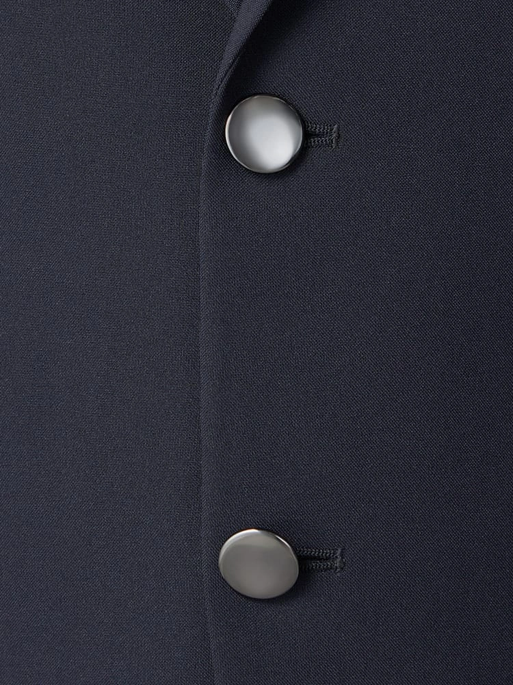 メタリックな光沢感のあるボタンがアクセントになったジャケット。