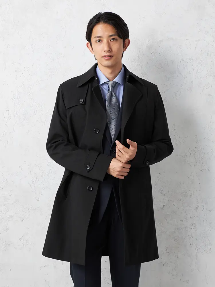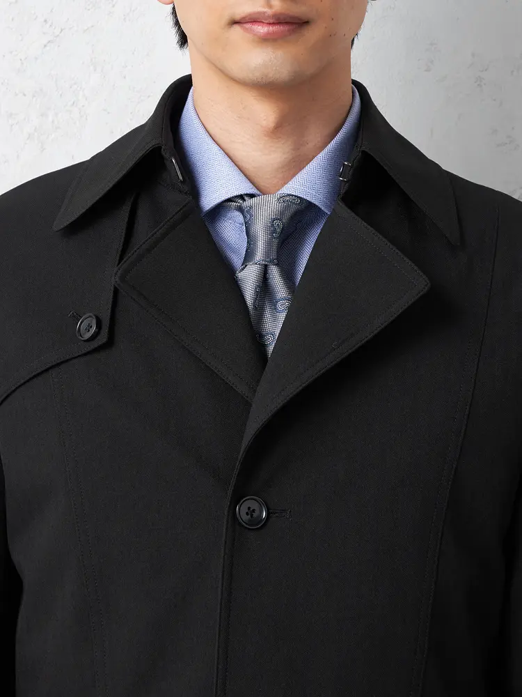 【撥水&防風】シングルセミトレンチAラインコートライナー付ヘリンボンnero秋冬【スリムデザイン】