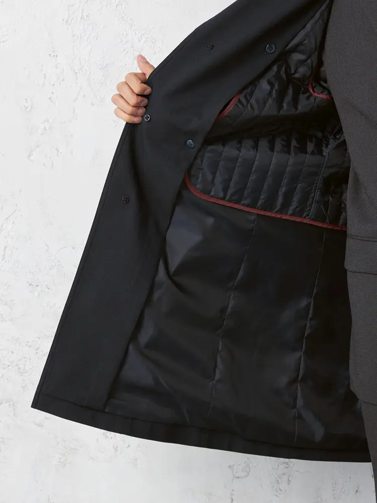 ベストのライナーが付属した防風仕様のステンカラーコートです。