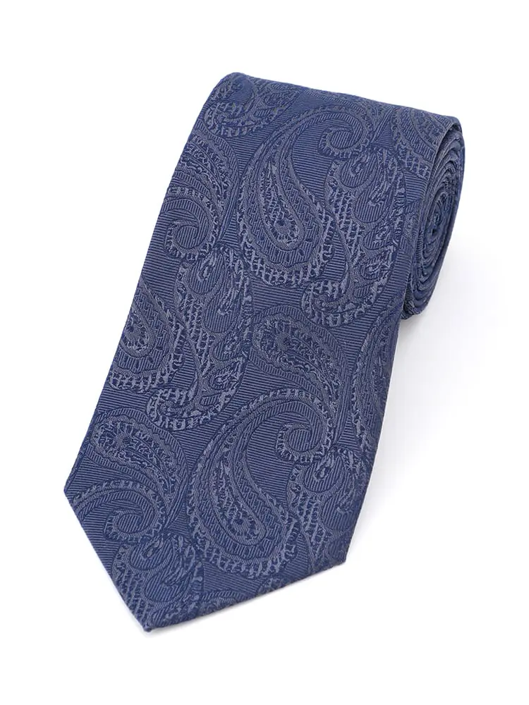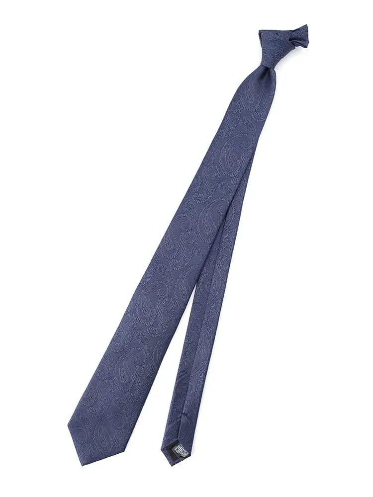 【ネロ】 成人式対応 シルク100%ネクタイ レギュラー ペーズリー nero 春夏(ネイビー)
