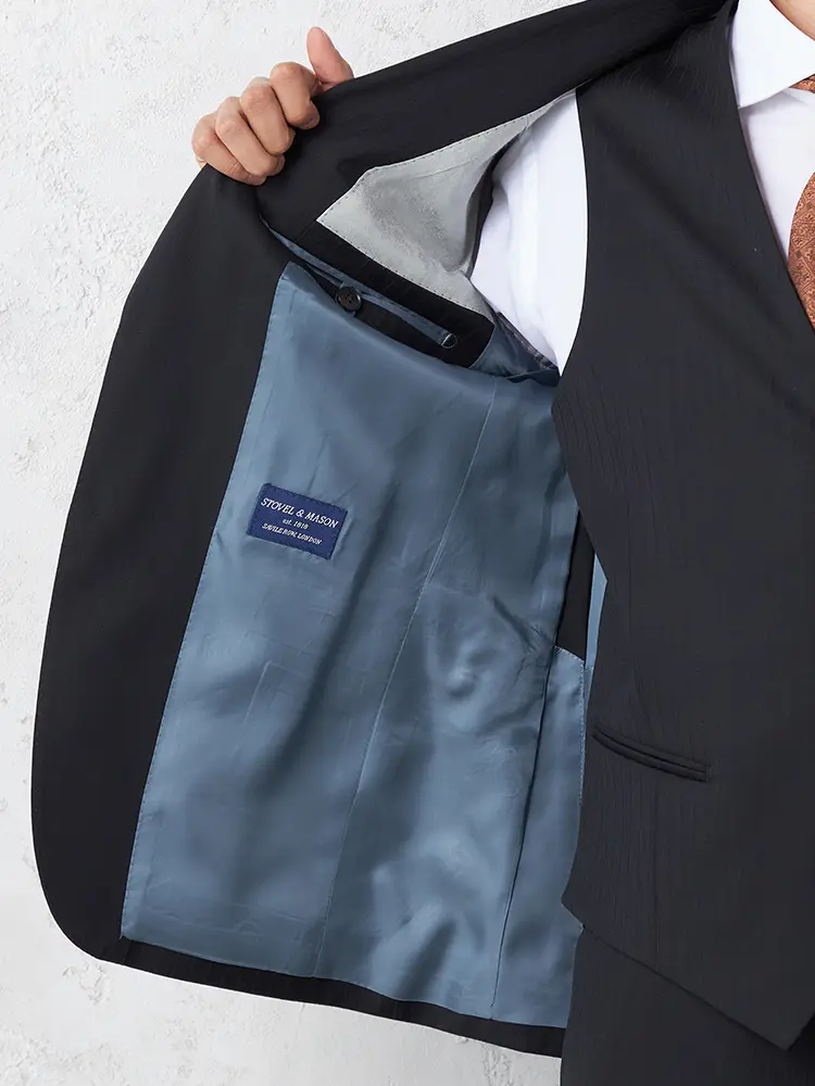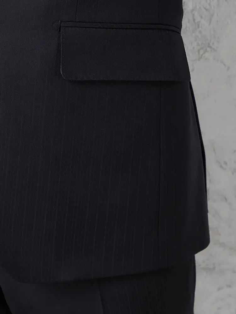 【即納】【WEB限定】スーツ2つボタンブラックシャドウストライプ上下ウォッシャブル3シーズン対応