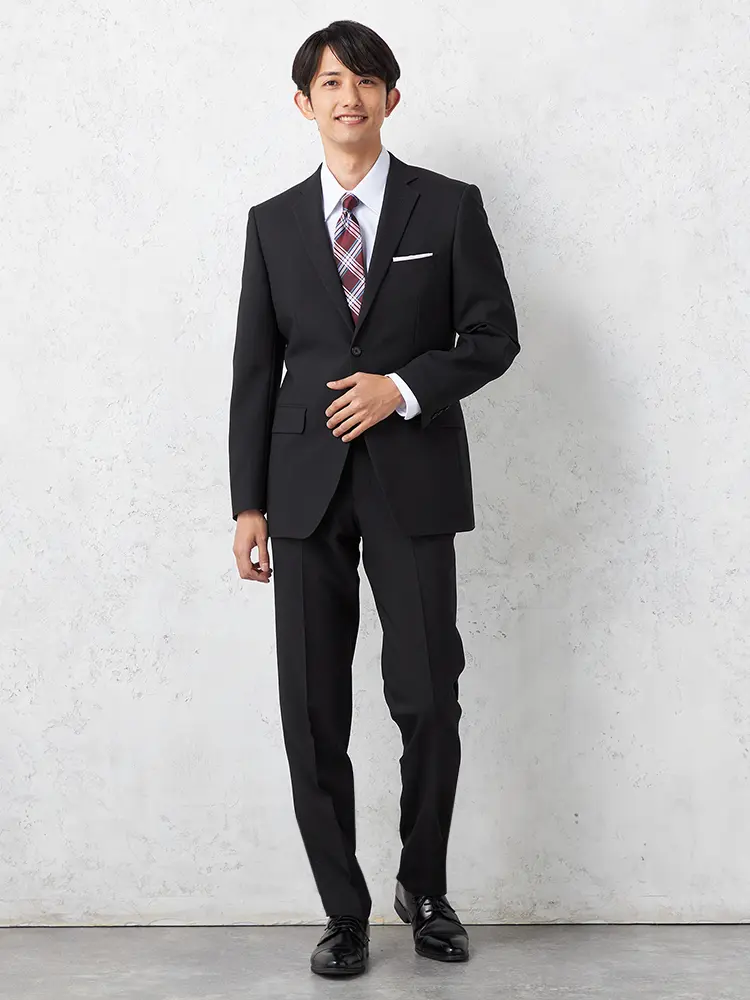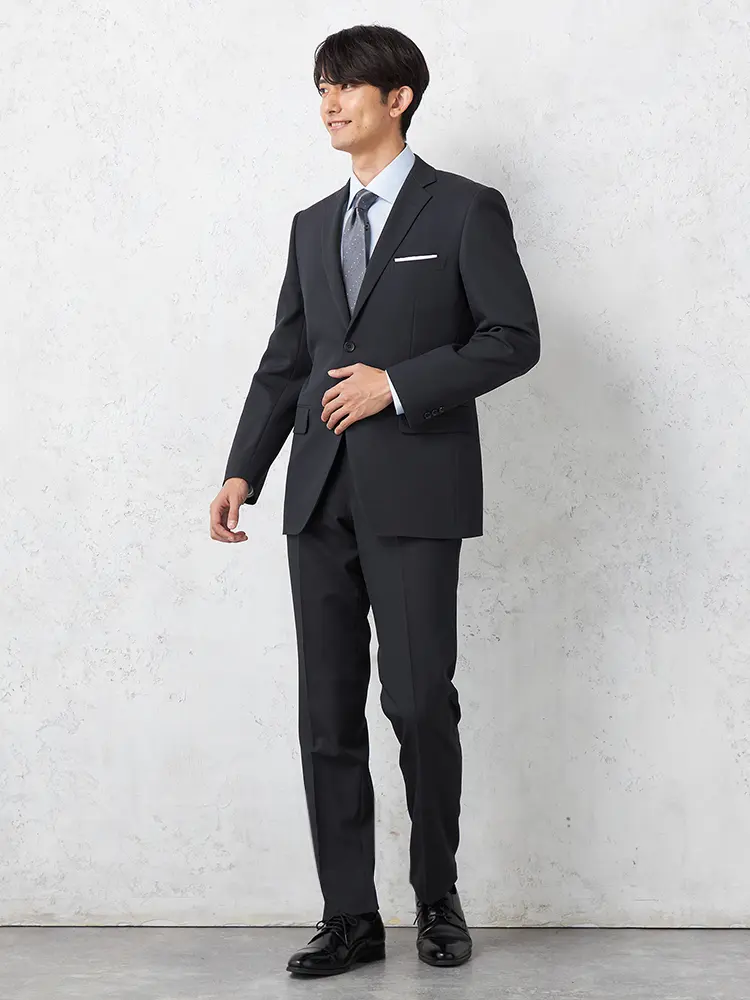 【即納】スーツ 2つボタン【WEB限定】上下ウォッシャブル ブラック 小柄 3シーズン対応