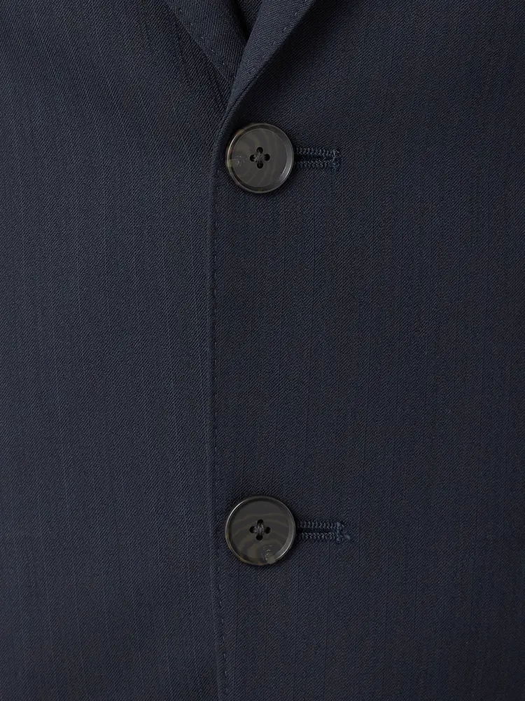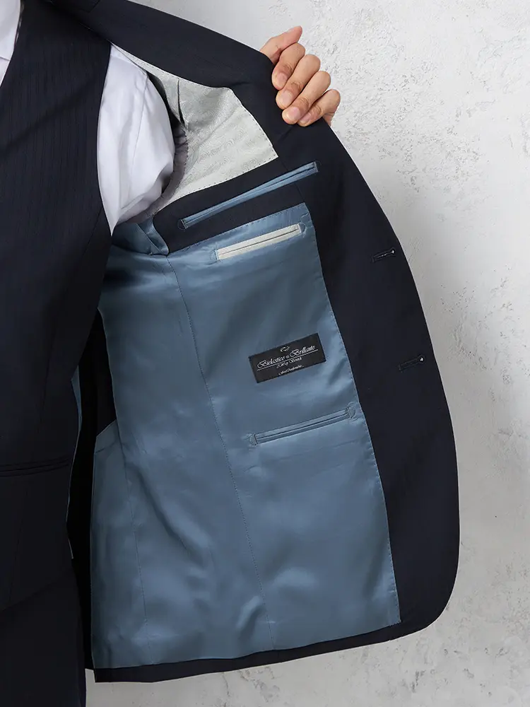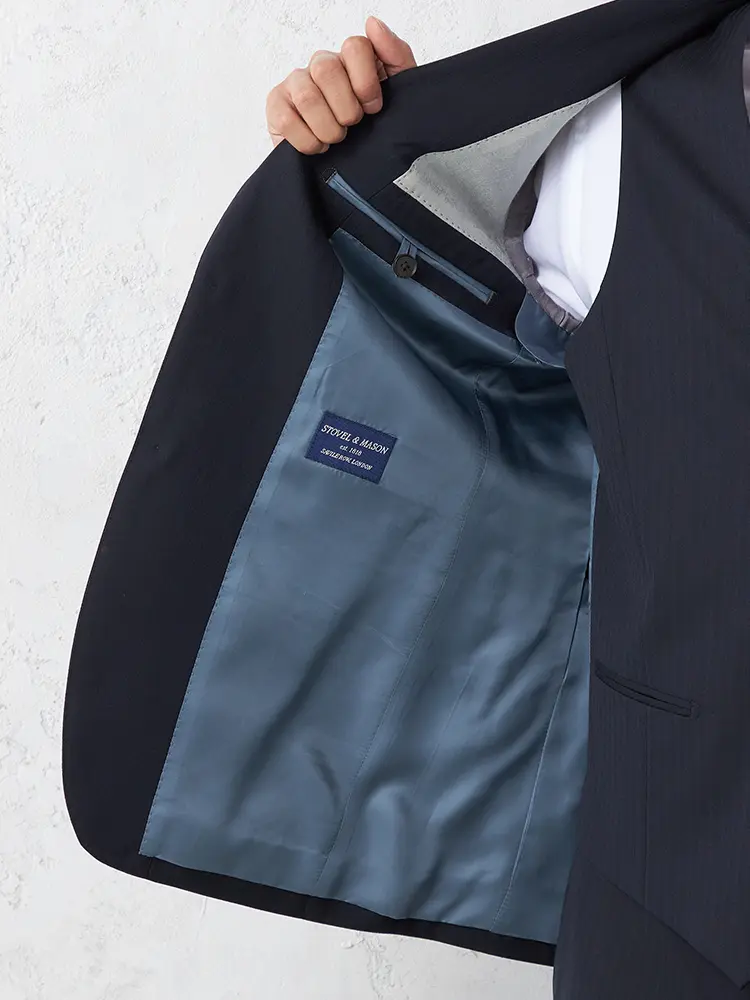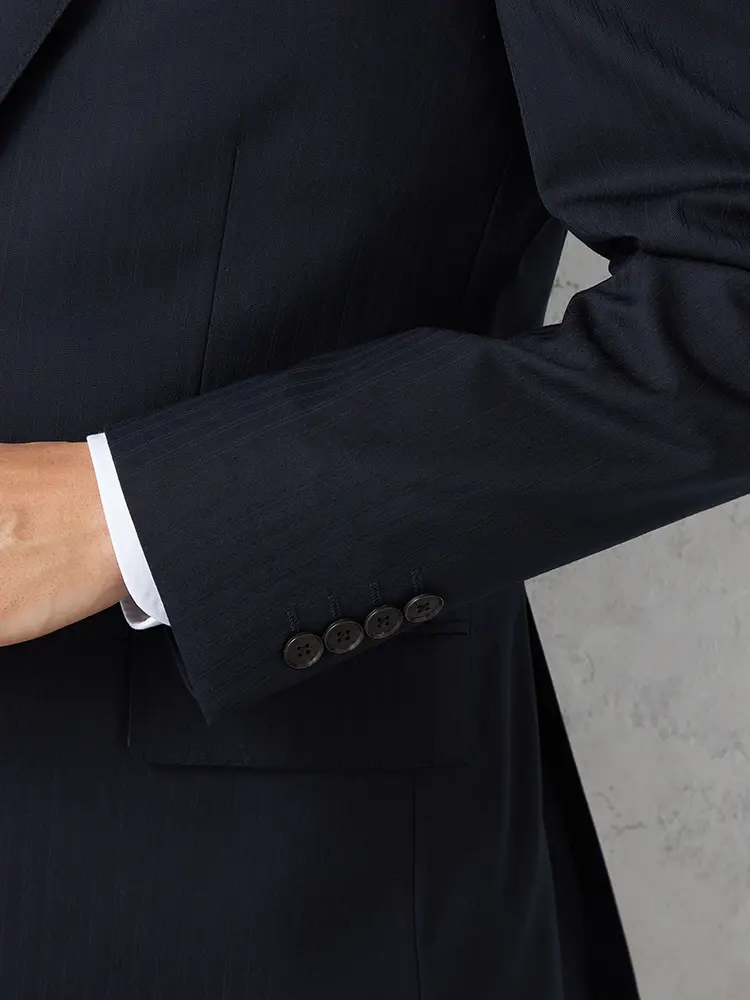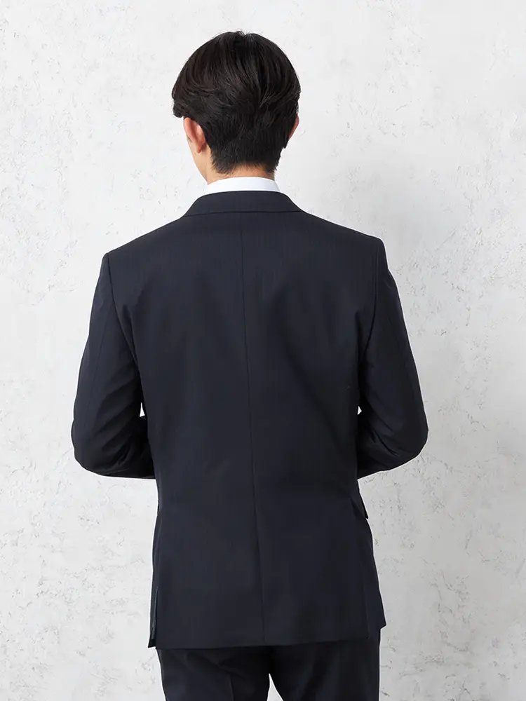 汎用性の高いストライプ柄で、背抜き仕様とサイドベンツが快適な動きと通気性を実現します。