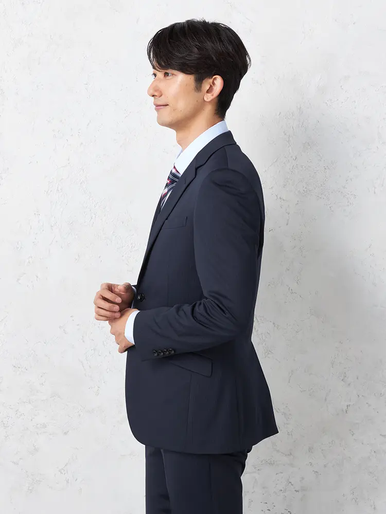 切り込みが1本のセンターベントデザインです。細身でスッキリとしたシルエットが特徴で、快適な着心地を提供します