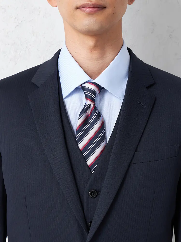 【即納】【WEB限定】スーツ2つボタンネイビーシャドウストライプ上下ウォッシャブル3シーズン対応