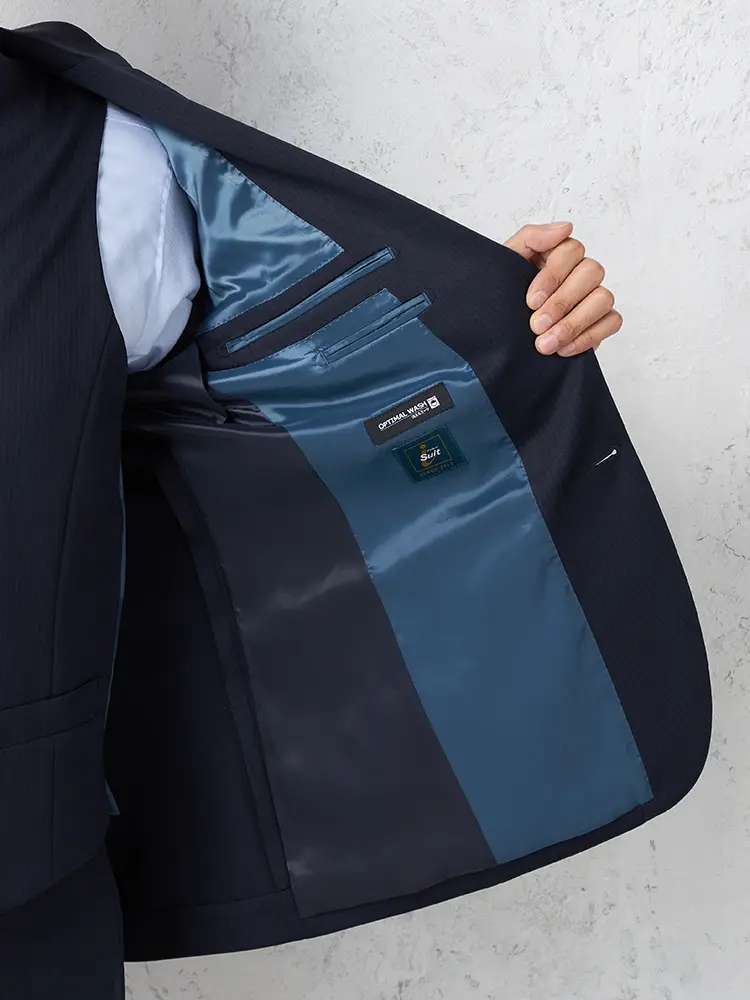背抜き・センターベント仕様の軽快な着心地に加え、ご家庭で洗えるウォッシャブル機能も完備。