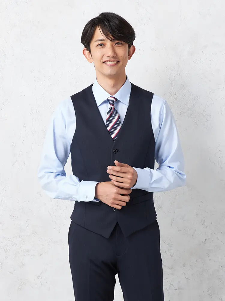 ベストを合わせたスタイルアレンジも自在です。