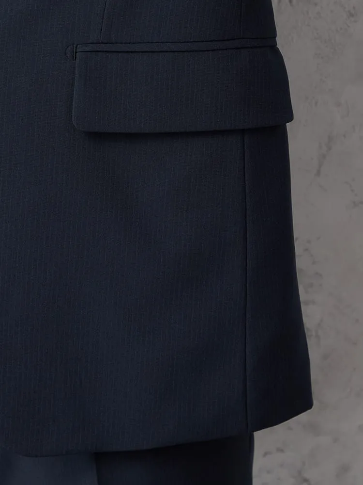 切り込みが1本のセンターベントデザインです。細身でスッキリとしたシルエットが特徴で、快適な着心地を提供します