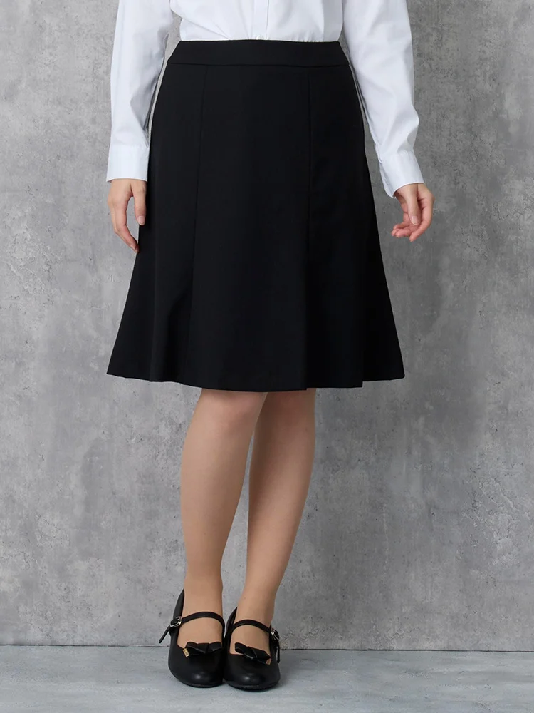 裾へと広がるきれいなシルエットがクリーンなビジネススタイルを演出するスカートです。
