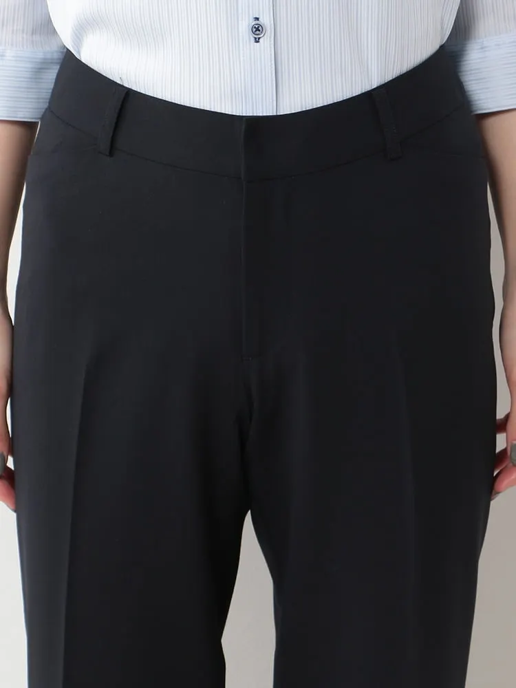 ストレートパンツ with 黒シャドーストライプ ウォッシャブル 2WAYストレッチ【レディース】