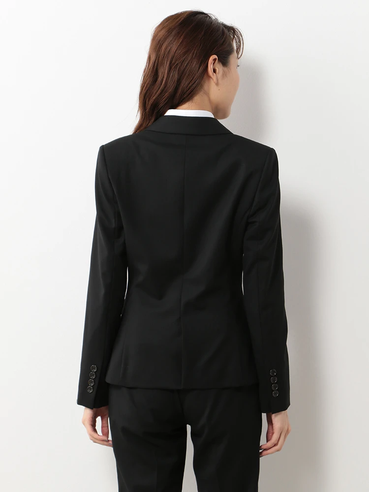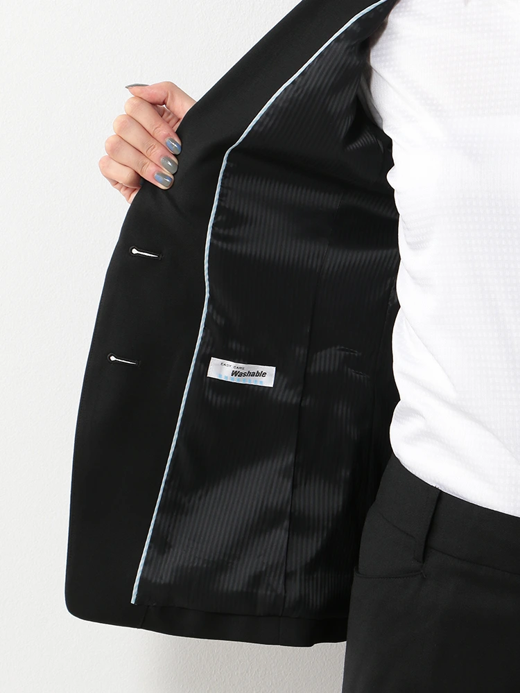 きちんと感のある2ボタンと定番のブラックカラーでリクルートスーツとしてもおすすめします。