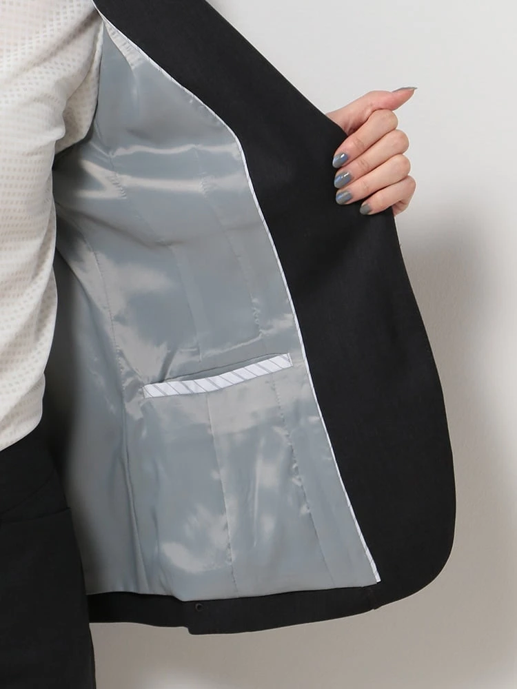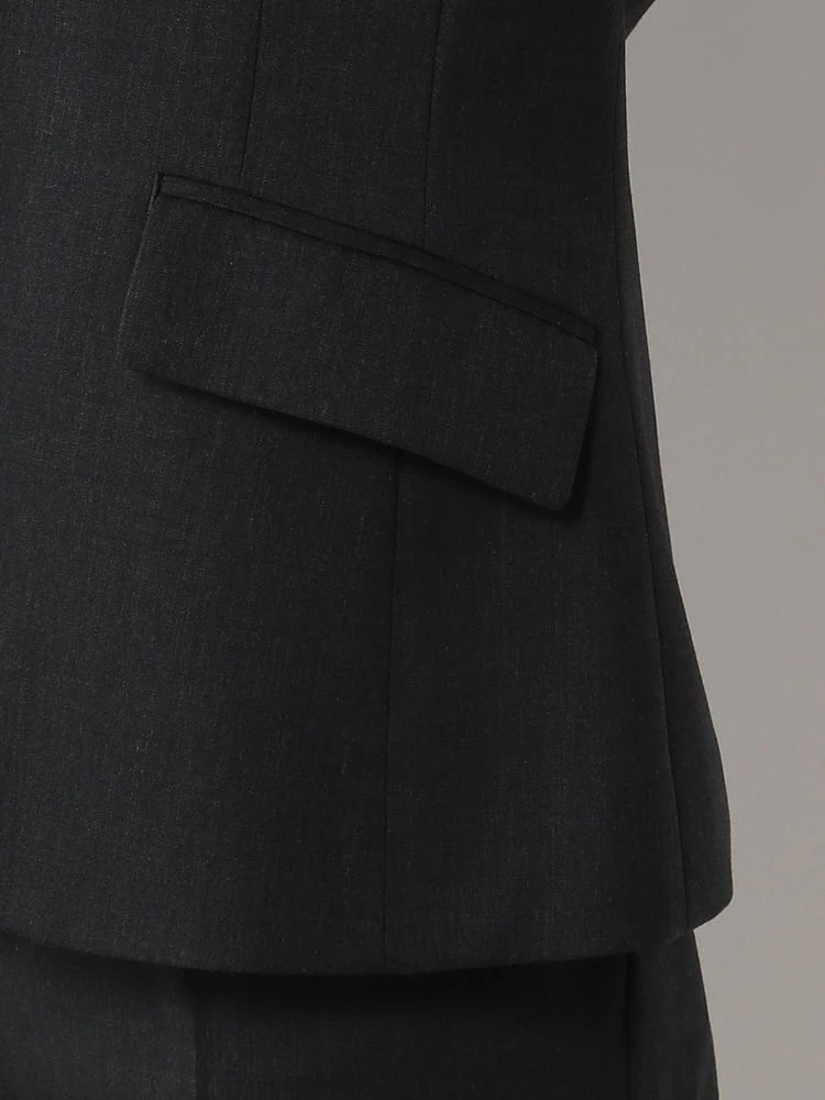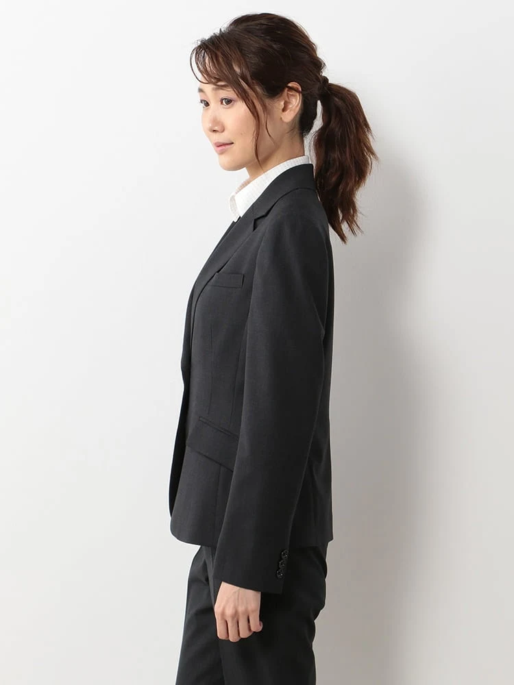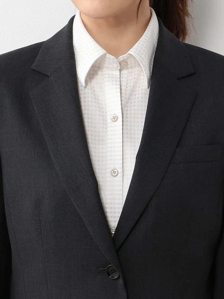 1つボタンのデザインで、シンプルかつスタイリッシュな印象を与えます。洗練されたシルエットが特徴です。