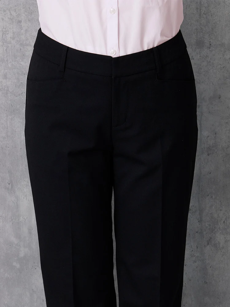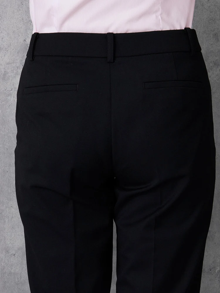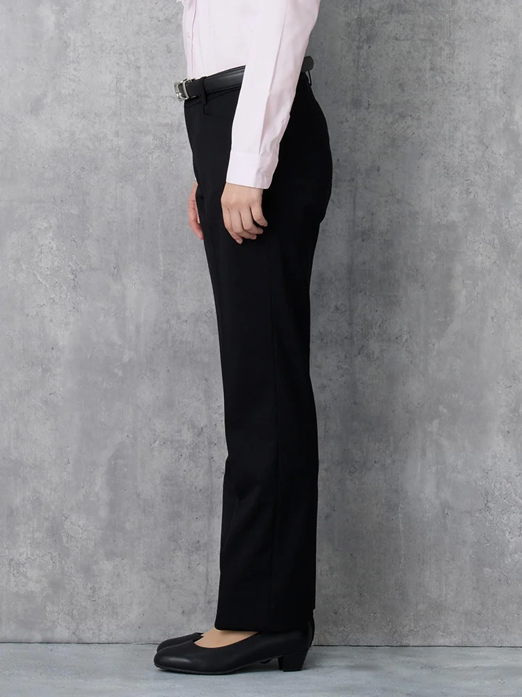 【ウォッシャブル】パンツストレートストレッチ黒無地S&MKnightsbridge通年【レディース】