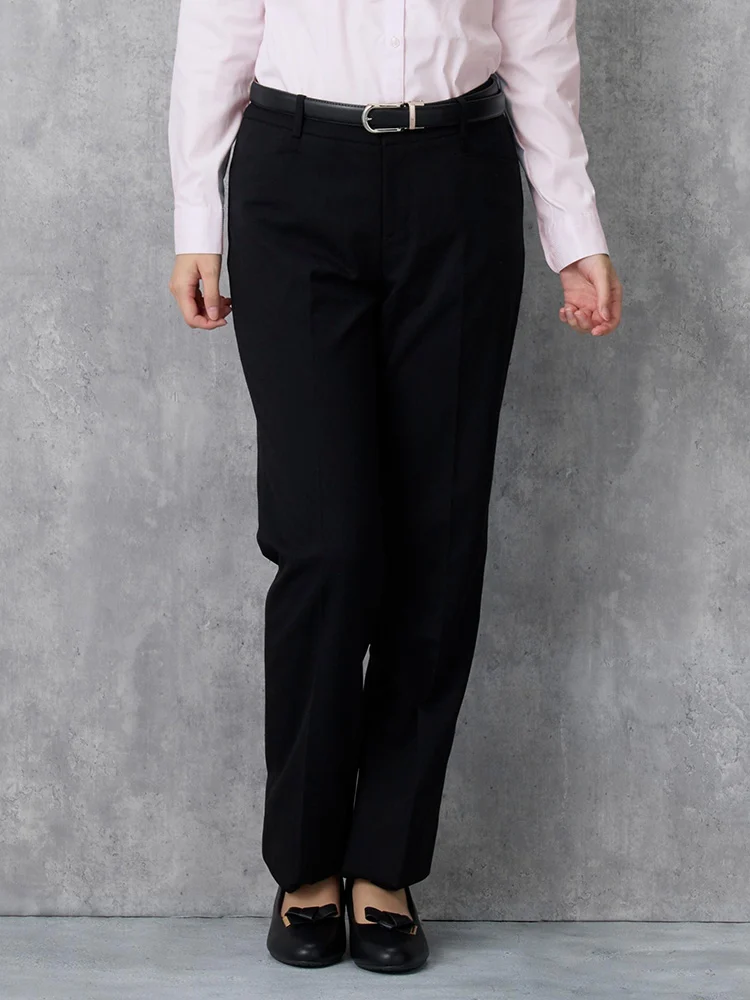 【ウォッシャブル】レディースストレートパンツ黒無地RENU生地使用SOFFICE通年【レディース】