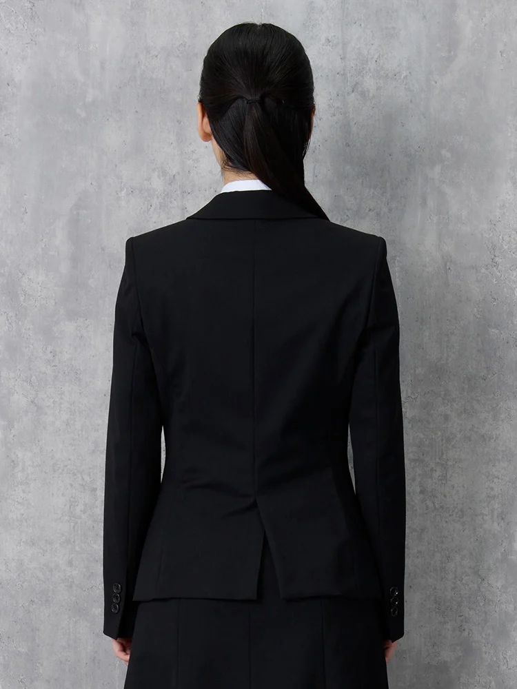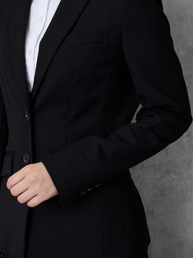 切り込みが1本のセンターベントデザインです。細身でスッキリとしたシルエットが特徴で、快適な着心地を提供します