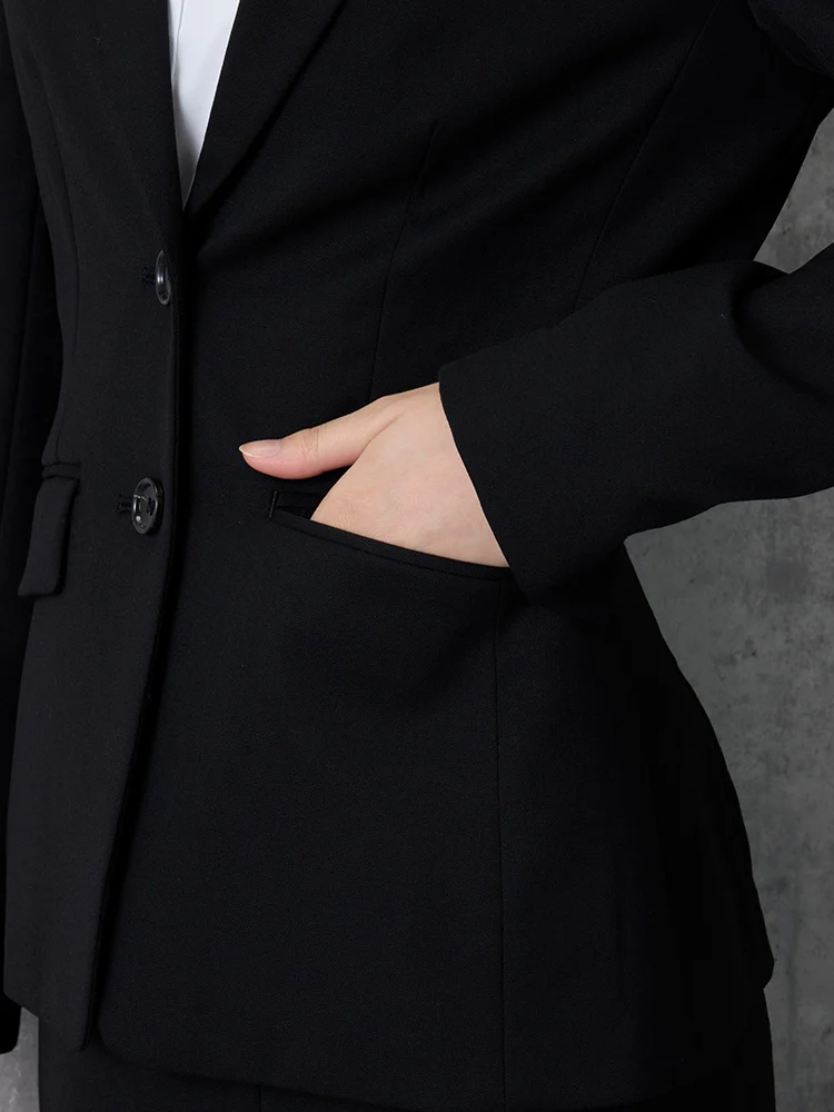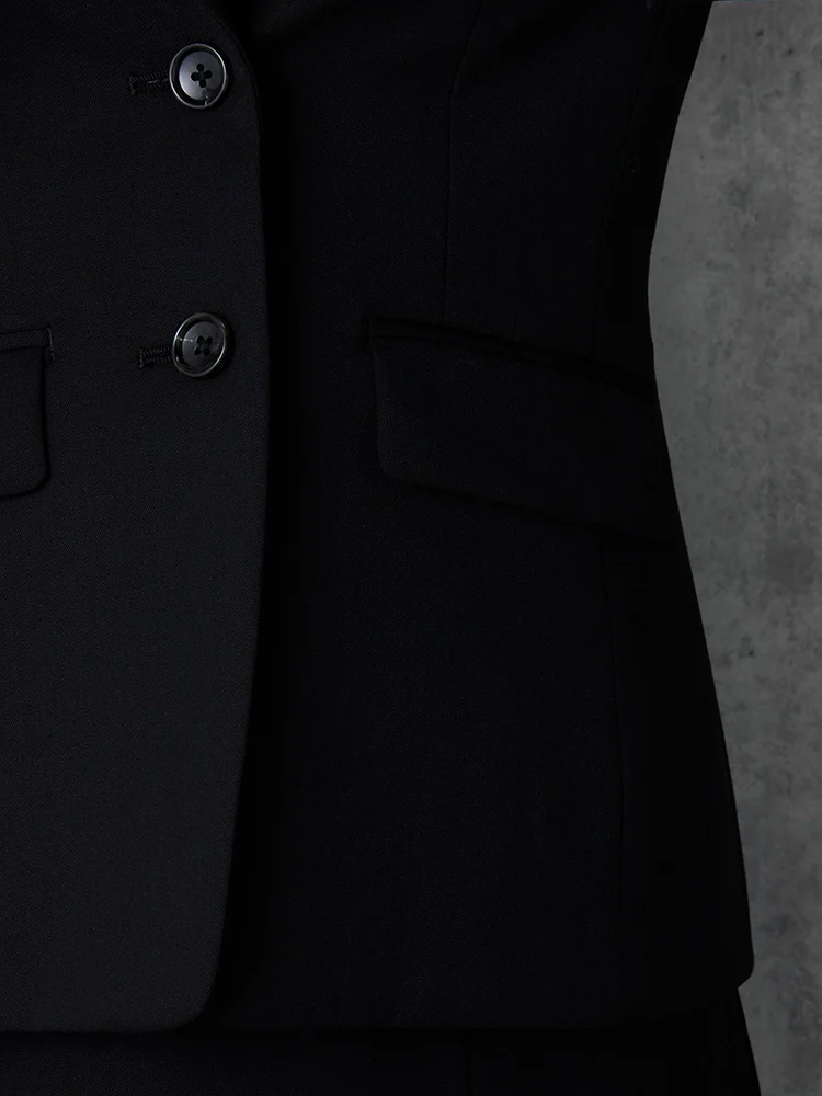 2つボタンのデザインで、クラシックなスタイルを演出。落ち着きと品のあるアイテムです。