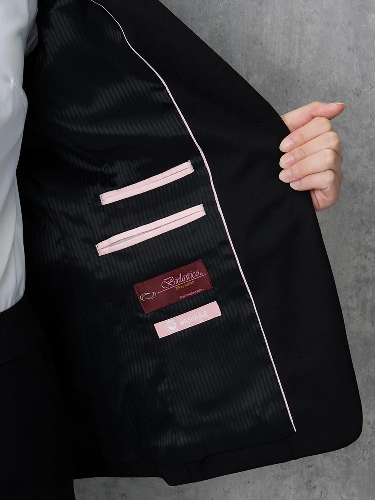 【ウォッシャブル】レディースジャケット黒無地RENU生地使用SOFFICE通年【レディース】