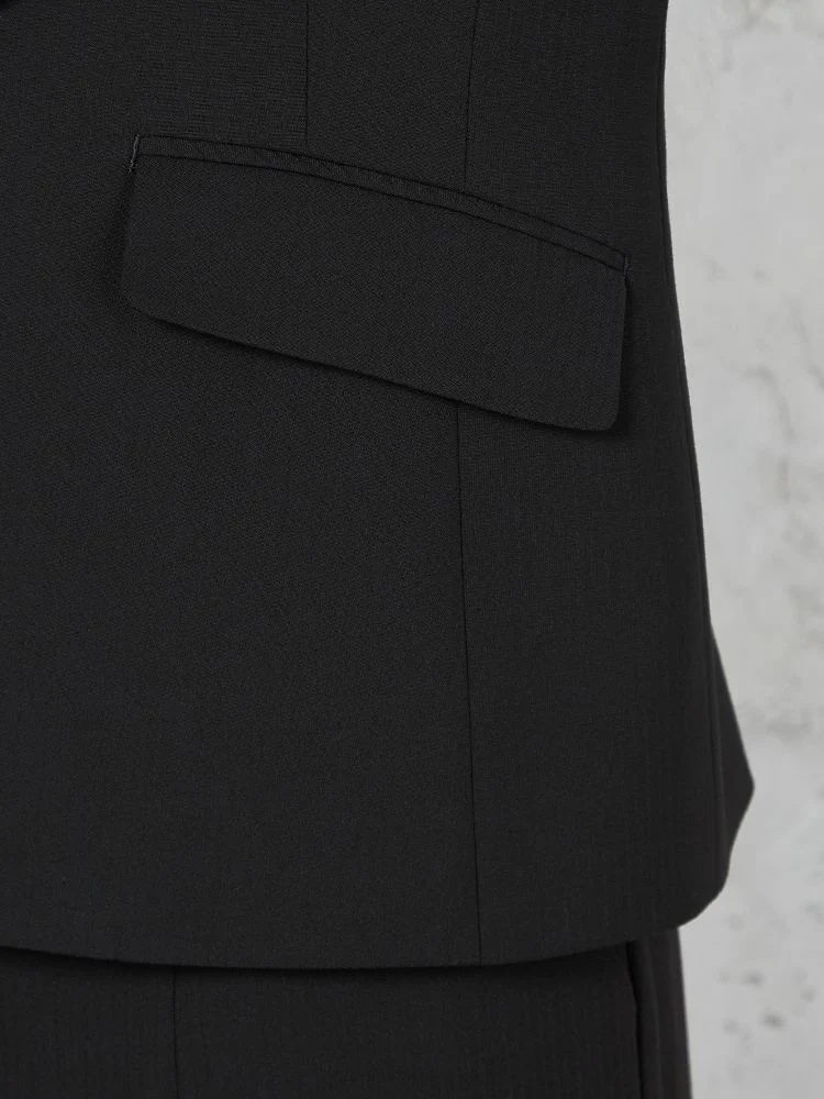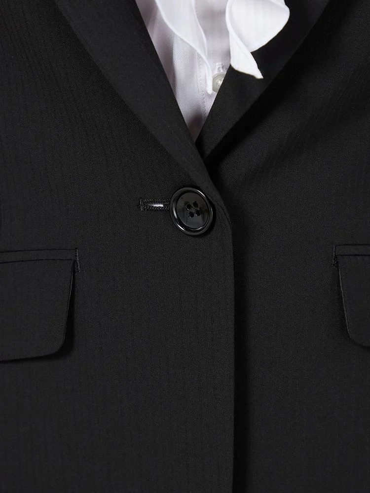 1つボタンのデザインで、シンプルかつスタイリッシュな印象を与えます。洗練されたシルエットが特徴です。