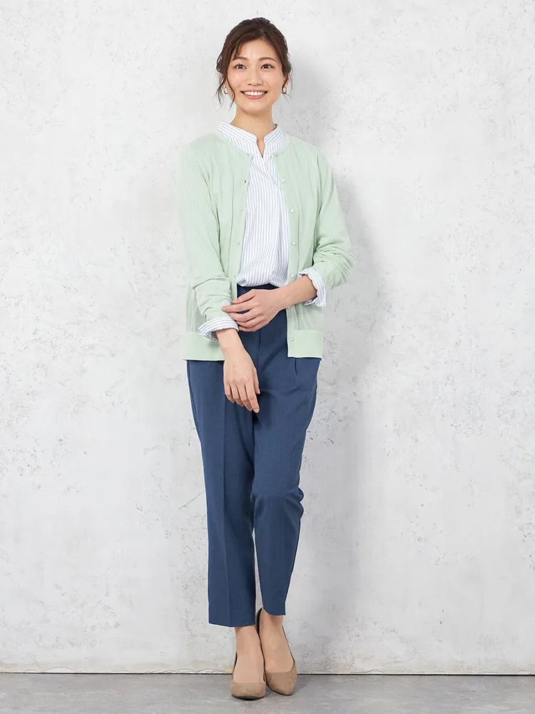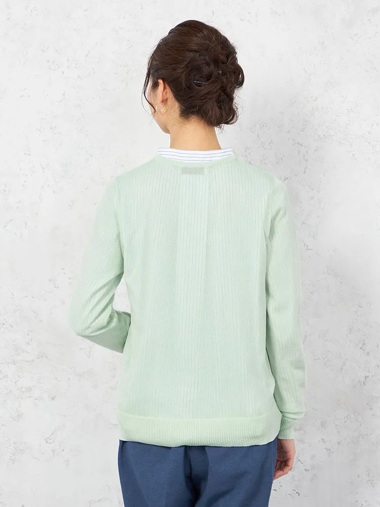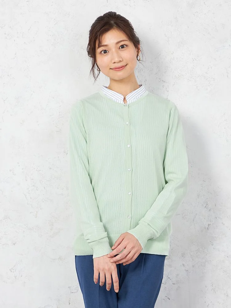 【ウォッシャブル】カーディガン 長袖 丸首カーデ 無地 SOFFICE 【レディース】(L.グリーン)