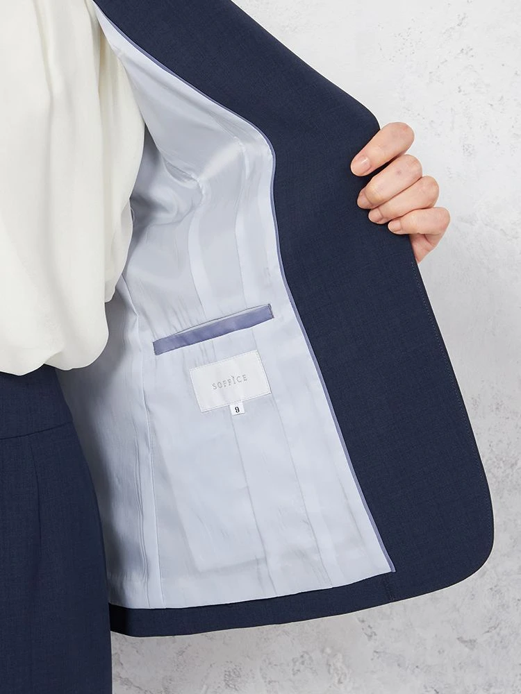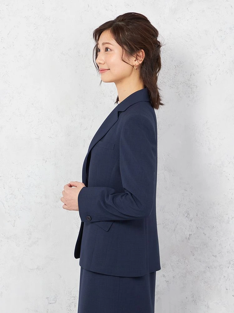 【UVカット&ウォッシャブル】ネイビーチェックジャケット1つボタンストレッチSOFFICE【レディース】