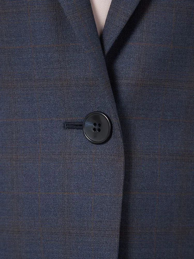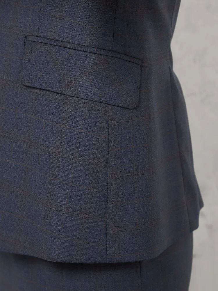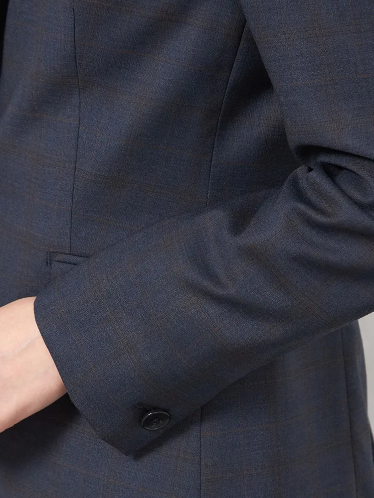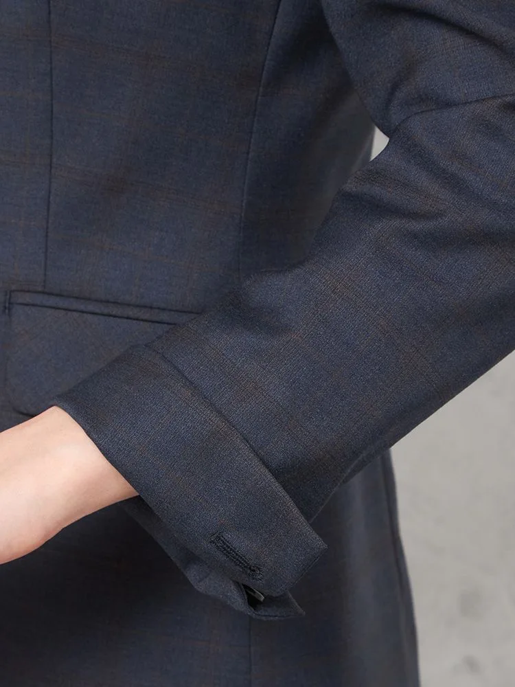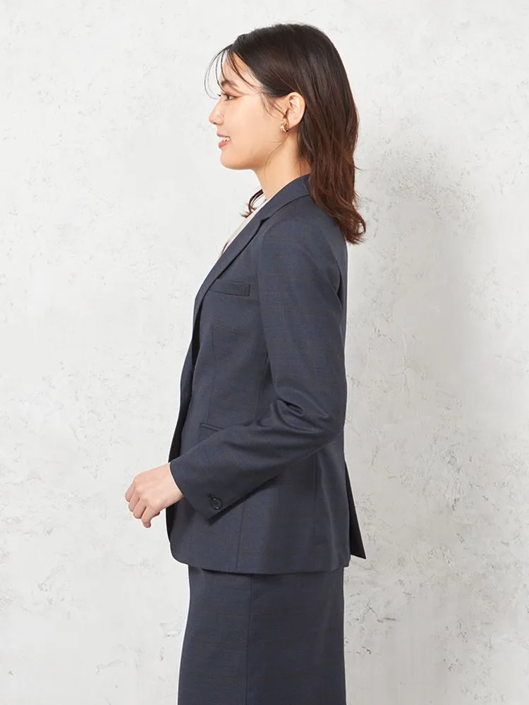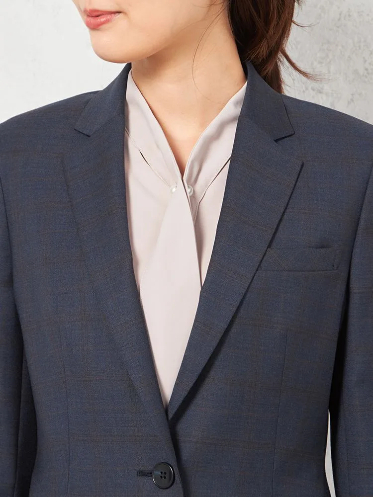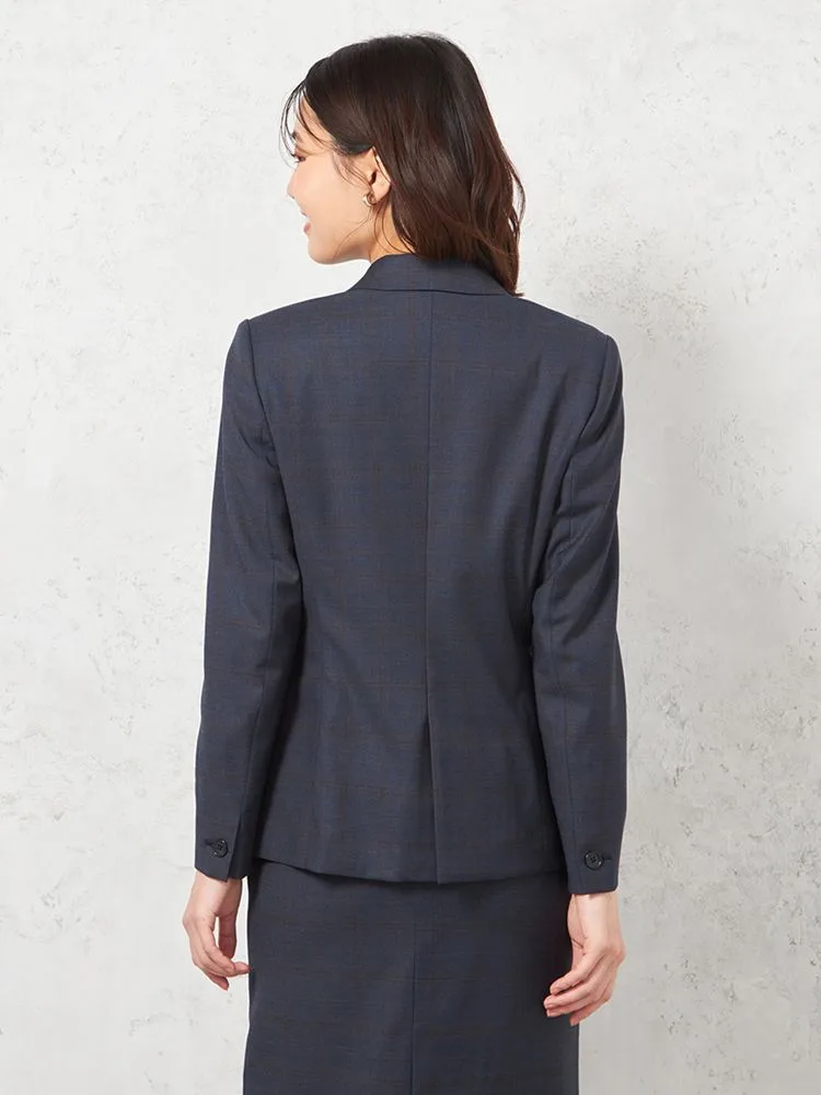 上品さや清潔感があるネイビーを基調としたチェック柄のテーラードジャケット。