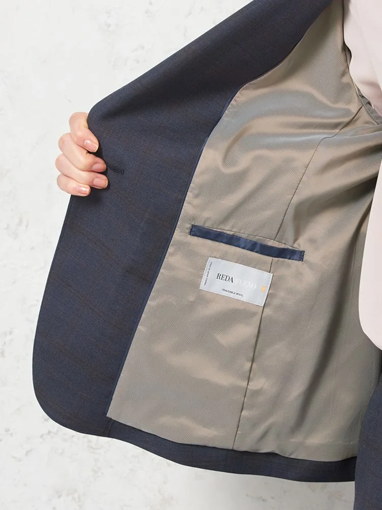 【ストレッチ】ジャケット 1つボタン【REDA FLEXO】 ネイビー チェック STOVEL&MASON 秋冬【レディース】