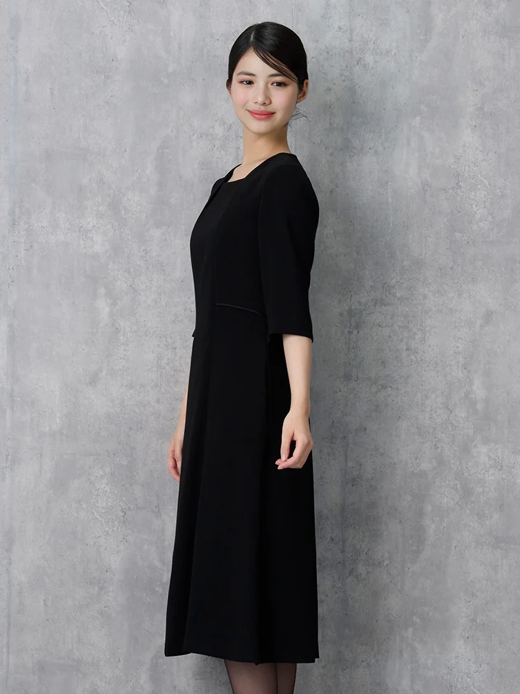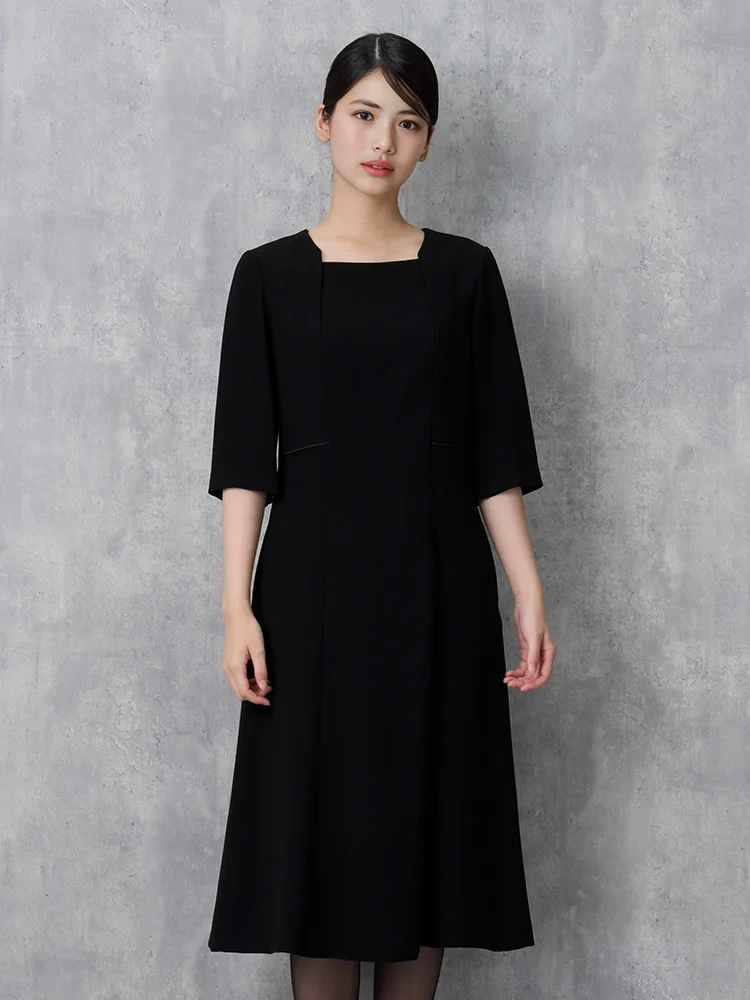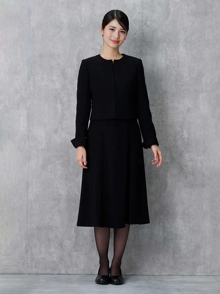ノーカラージャケット・ワンピースのフォーマルアンサンブル。