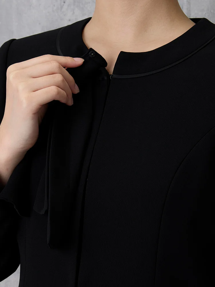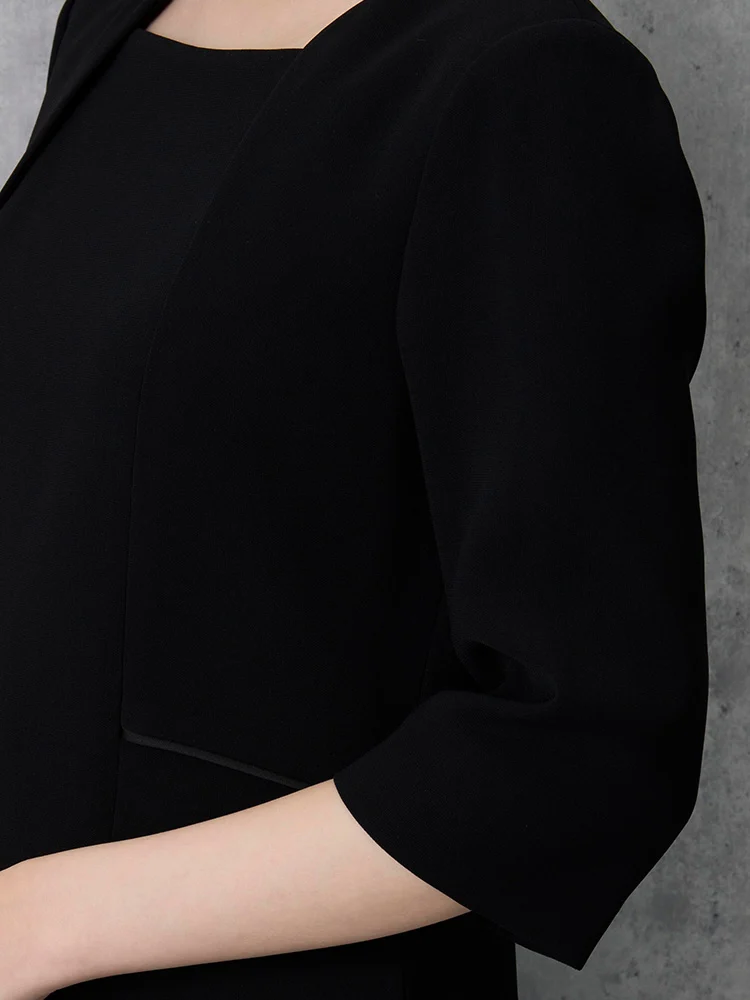 【即納】【WEB限定フォーマル】ロールカラーアンサンブルジャケット/ワンピース黒無地通年礼服【レディース】