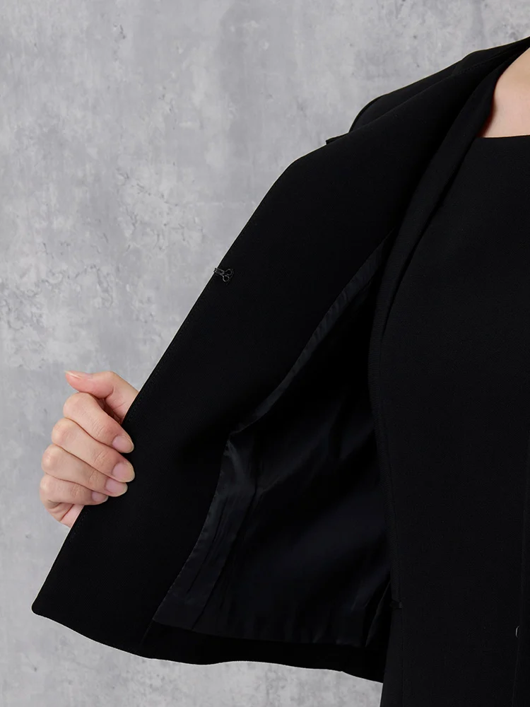 スマートで現代的なブラックフォーマルスタイルを叶える一着です。
