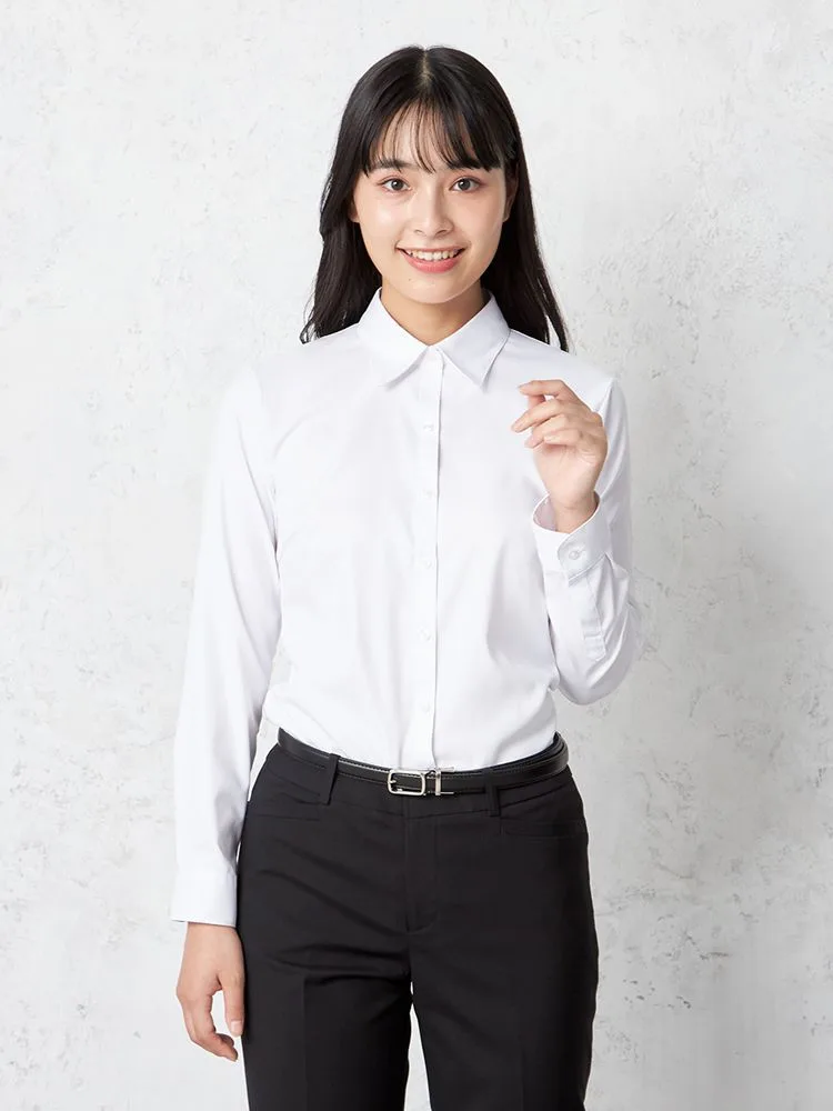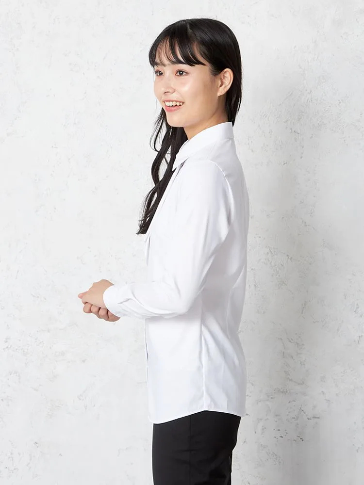 【形態安定】ブラウス長袖GraceField白ブロードスキッパーストレッチリクルート通年【レディース】