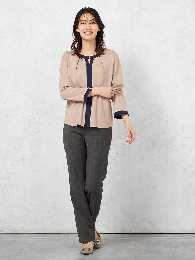 【SOFFICE】デシン配色7分袖ブラウスニット・カットソー無地ウォッシャブル通年【レディース】