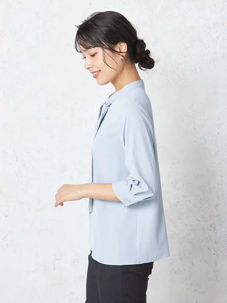 【SOFFICE】デシンボウタイ7分袖ブラウスニット・カットソー無地ウォッシャブル通年【レディース】