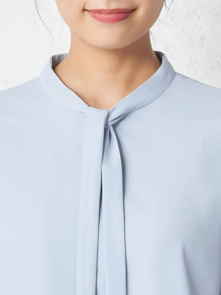 スリムなボウタイでクラシカルモダンな雰囲気に仕上げたブラウス。