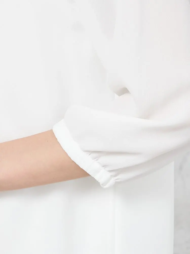 しなやかなドレープ感のある風合いが特長のジョーゼット素材で仕立てた、7分袖プルオーバー。