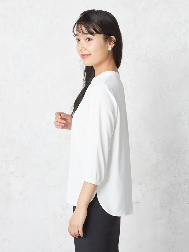 【SOFFICE】デシンボウタイ7分袖ブラウスニット・カットソー無地ウォッシャブル通年【レディース】