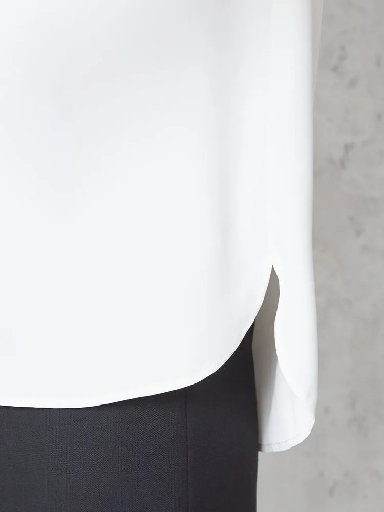 滑らかなタッチと上品な微光沢が特徴のツイル素材で表面感があり、下着の透けも軽減してくれます。