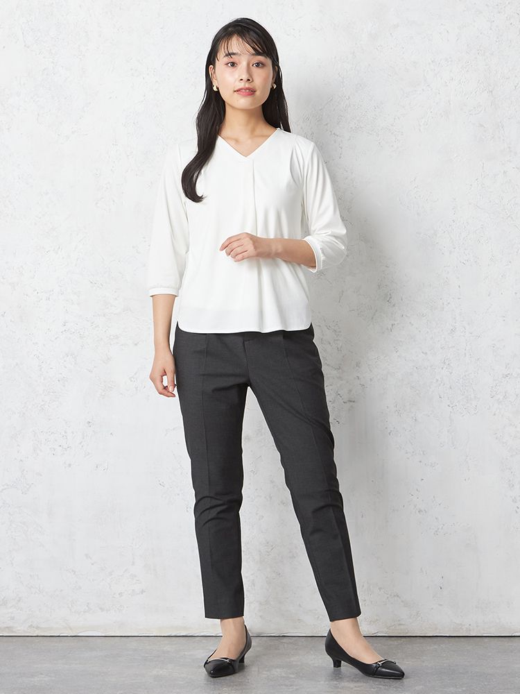 左右に1本ずつ生地の折り込みがあり、標準的なシルエットでシーンを選ばず上品なシルエットが楽しめます。