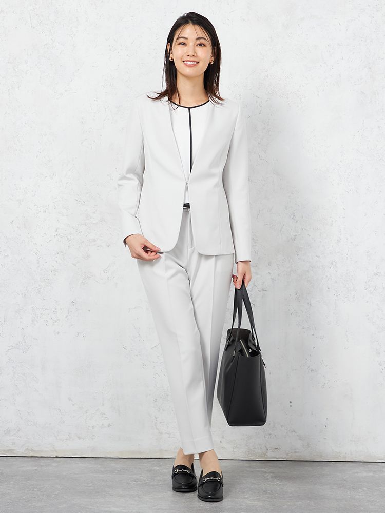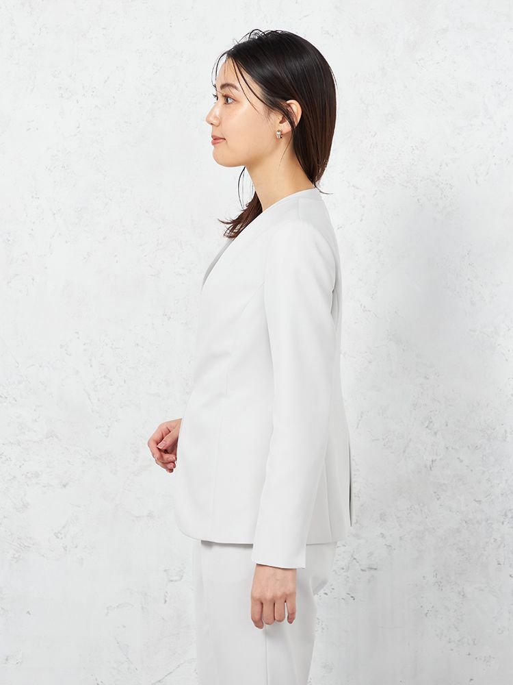 ハンサムなスタイリングを演出してくれる、クリーンな表情のノーカラージャケット。