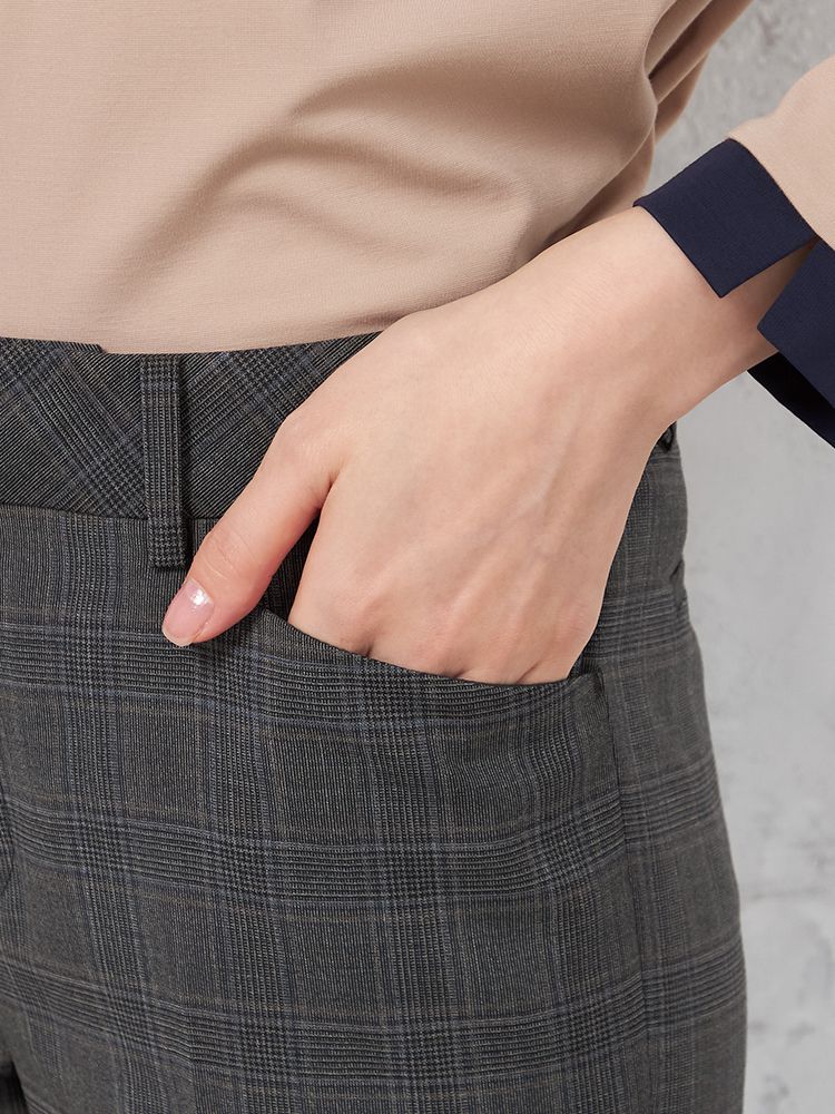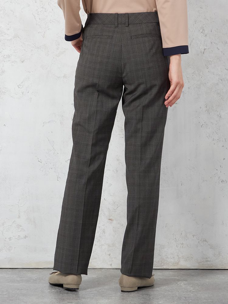 【ストレッチ】パンツストレート【REDAFLEXO】ストレッチインベルグレーチェックSTOVEL&MASON秋冬【レディース】