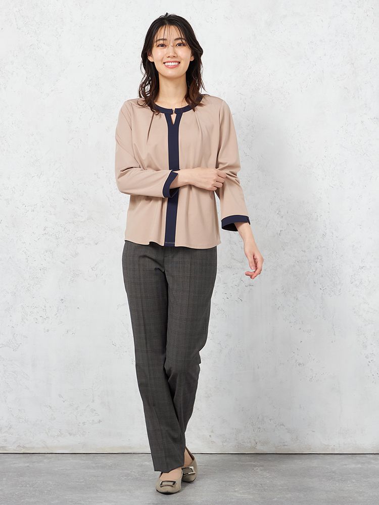 パンツの腰回りに生地の折り込みがなく、スッキリとしたシルエットを実現します。シンプルで洗練された印象を与え、すっきりとした着こなしが可能です。