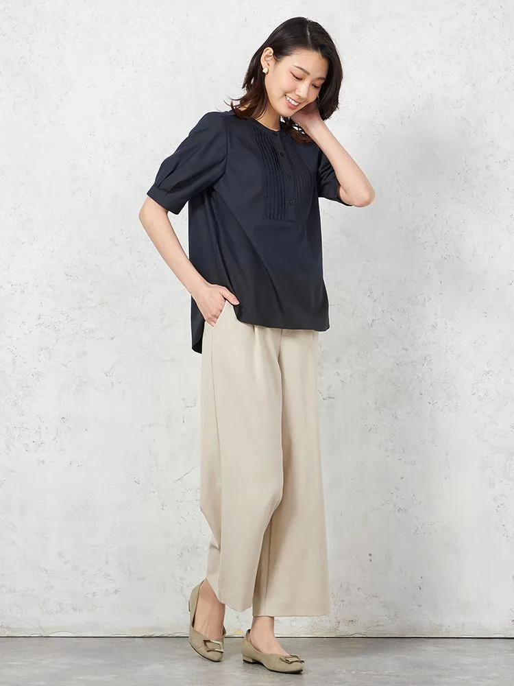 フロントにあしらわれたピンタックに視線が集まるブラウスです。