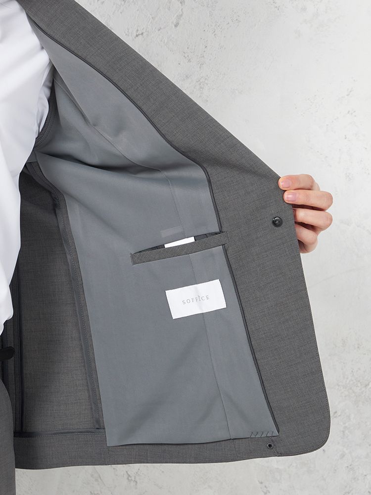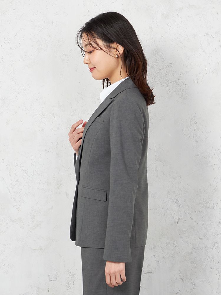 切り込みが1本のセンターベントデザインです。細身でスッキリとしたシルエットが特徴で、快適な着心地を提供します