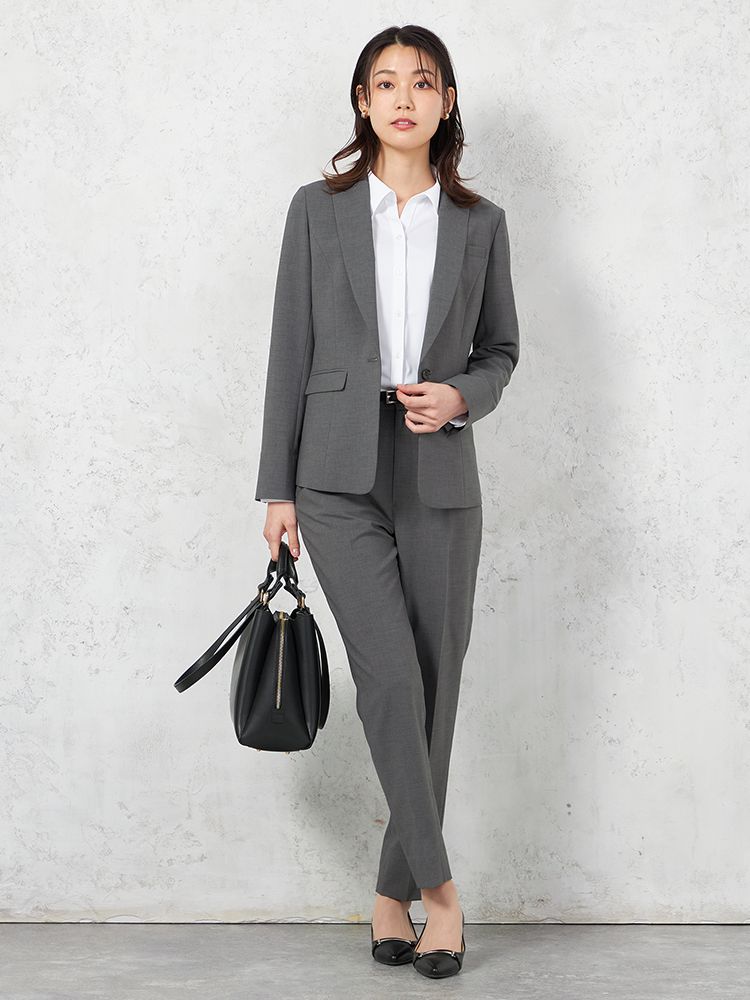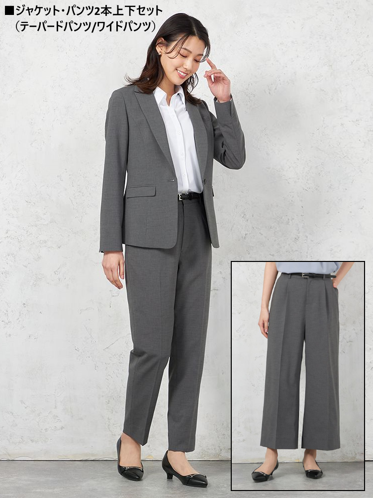 【ツーパンツスーツ上下セット】ジャケット/テーパードパンツ/ワイドパンツセット 上下ウォッシャブル ストレッチ 無地 SOFFICE 【レディース】(C.グレー)