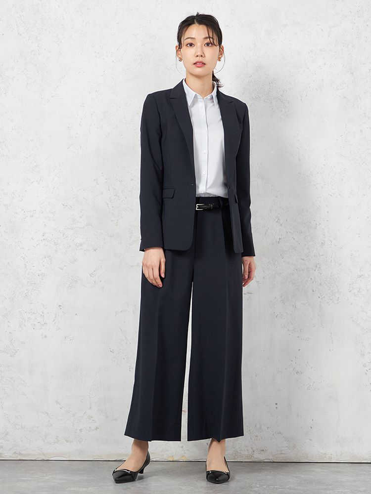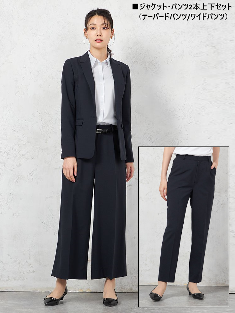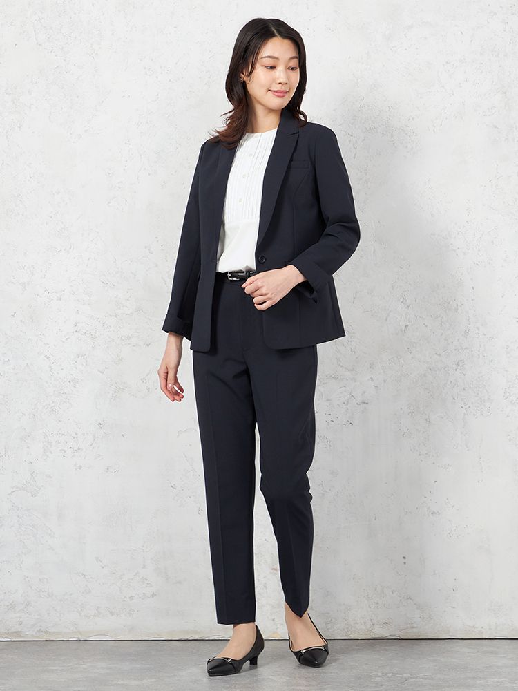 【即納】【パンツスーツ上下セット】ハイストレッチカラーレスジャケットパンツセット【WEB限定】秋冬【レディース】