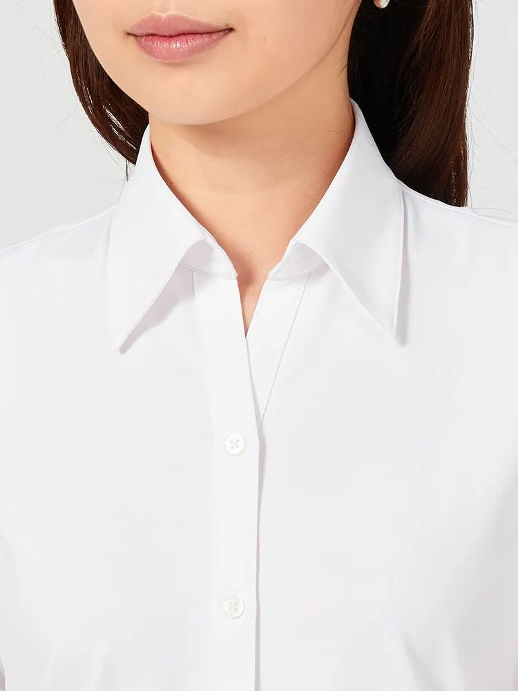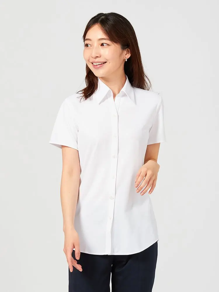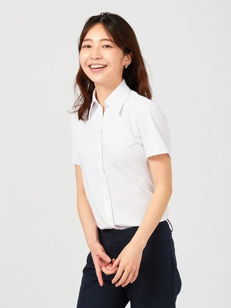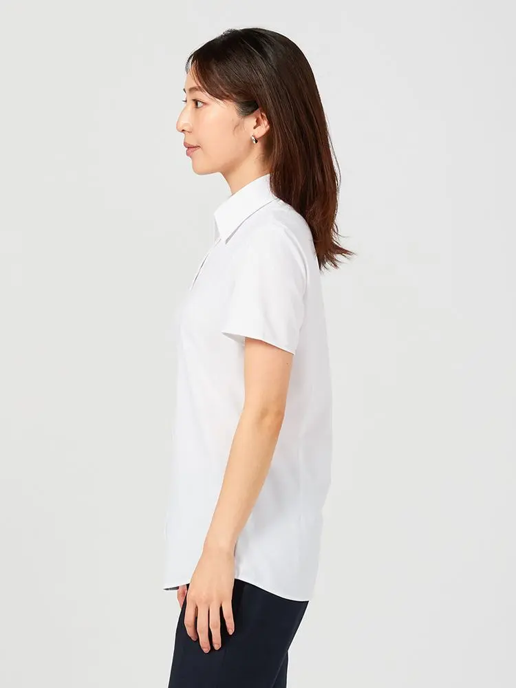 【完全ノーアイロン】半袖ブラウスi-shirt透け防止白無地レギュラーカラーアイシャツ春夏【レディース】