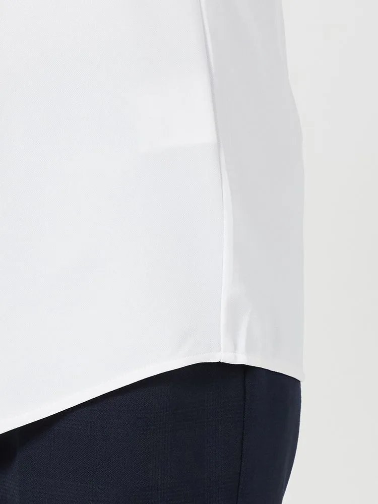 汗を吸収するとクール感を得ることが出来る東洋紡アイスライブ加工を施した半袖の白無地シャツ。