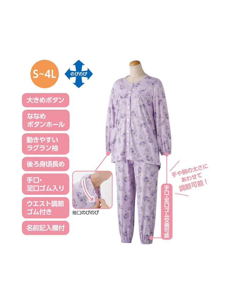 のびのびストレッチで着脱らくらく。袖口ゴムが交換できご自身に合った太さで着用できます。なめらかな風合いで気持ちいい。