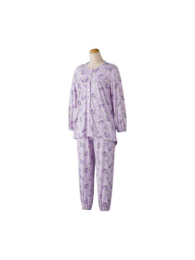 レディース ワンタッチのびのびストレッチパジャマ 大きめサイズ 【CF】(パープル)