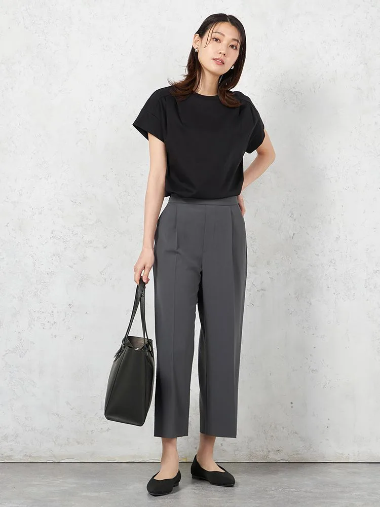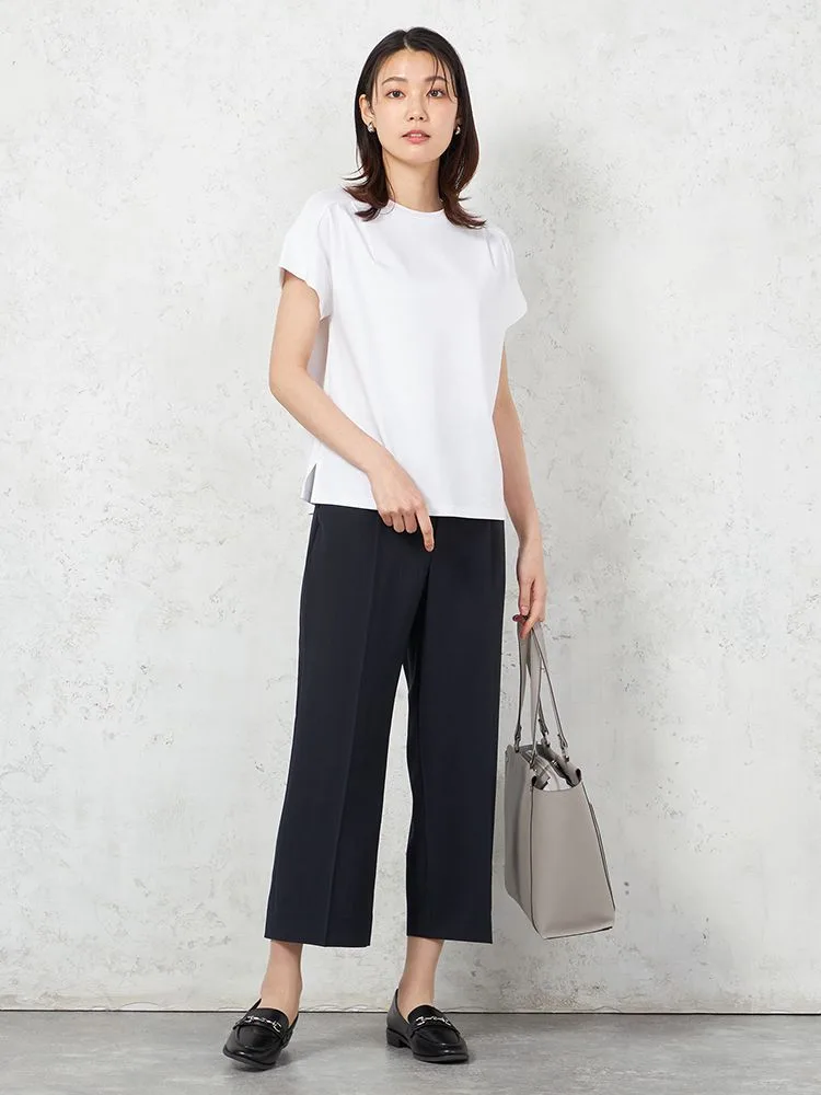 【INDIVI】ウォッシャブル ジャージフレンチスリーブカットソー 無地 【レディース】(ブラック)