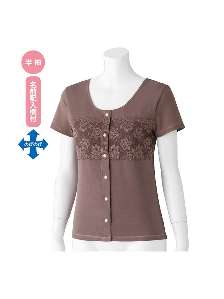 • ブラウン レディース カップ付レース半袖ホックインナー/婦人用/介護/前開き/肌着/カップ付 【CF】 | はるやま公式通販